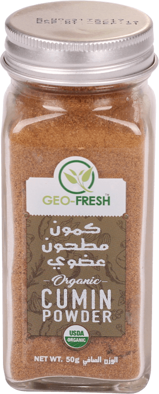 تقدم Geo Fresh مجموعتها الصحية والمغذية من مسحوق الايورفيدا العضوي المعبأ بالمغذيات الأساسية التي من شأنها أن تعزز مناعتك ، وتجعلك مفعمًا بالنشاط وتزودك بكل الفوائد الصحية التي تحتاجها والتي تتطلب منك أن تعيش حياة صحية. يساعد الاستخدام المنتظم للكمون في طعامك في الحفاظ على بشرتك خالية من الدمامل والطفح الجلدي والبثور وغيرها. وذلك لأنه يحتوي على مكونات مثل Cuminaldehyde و Thymol و Phosphorus ، وهي عوامل جيدة لإزالة السموم ، تساعد في تسهيل إزالة السموم بانتظام من الجسم من خلال جهاز الإخراج وليس من خلال الدمامل والبثور.