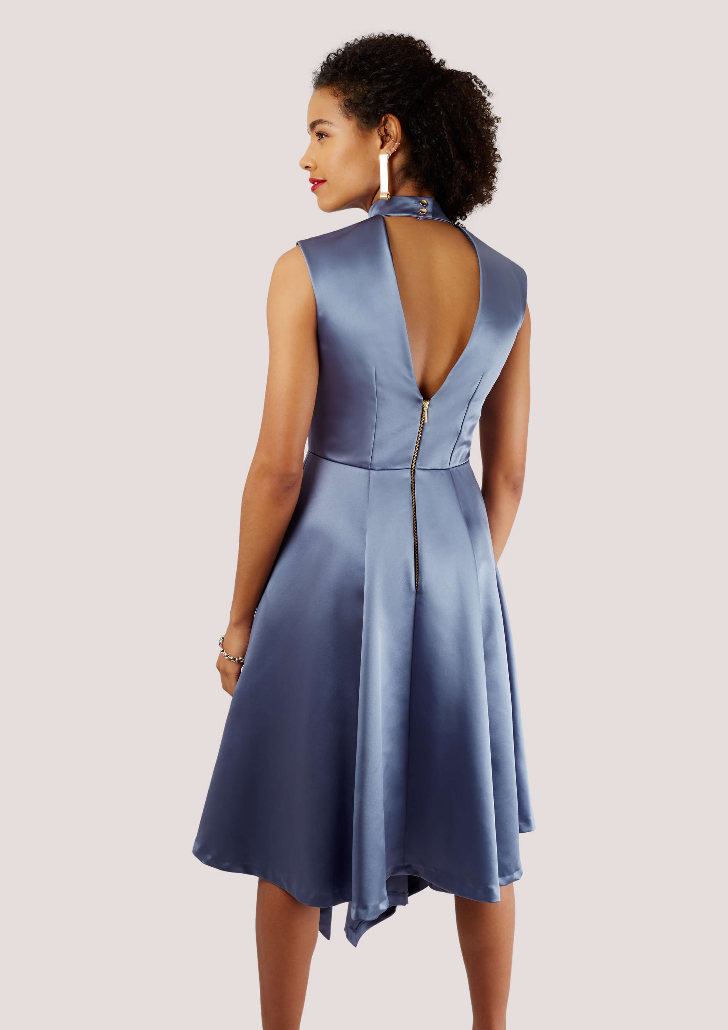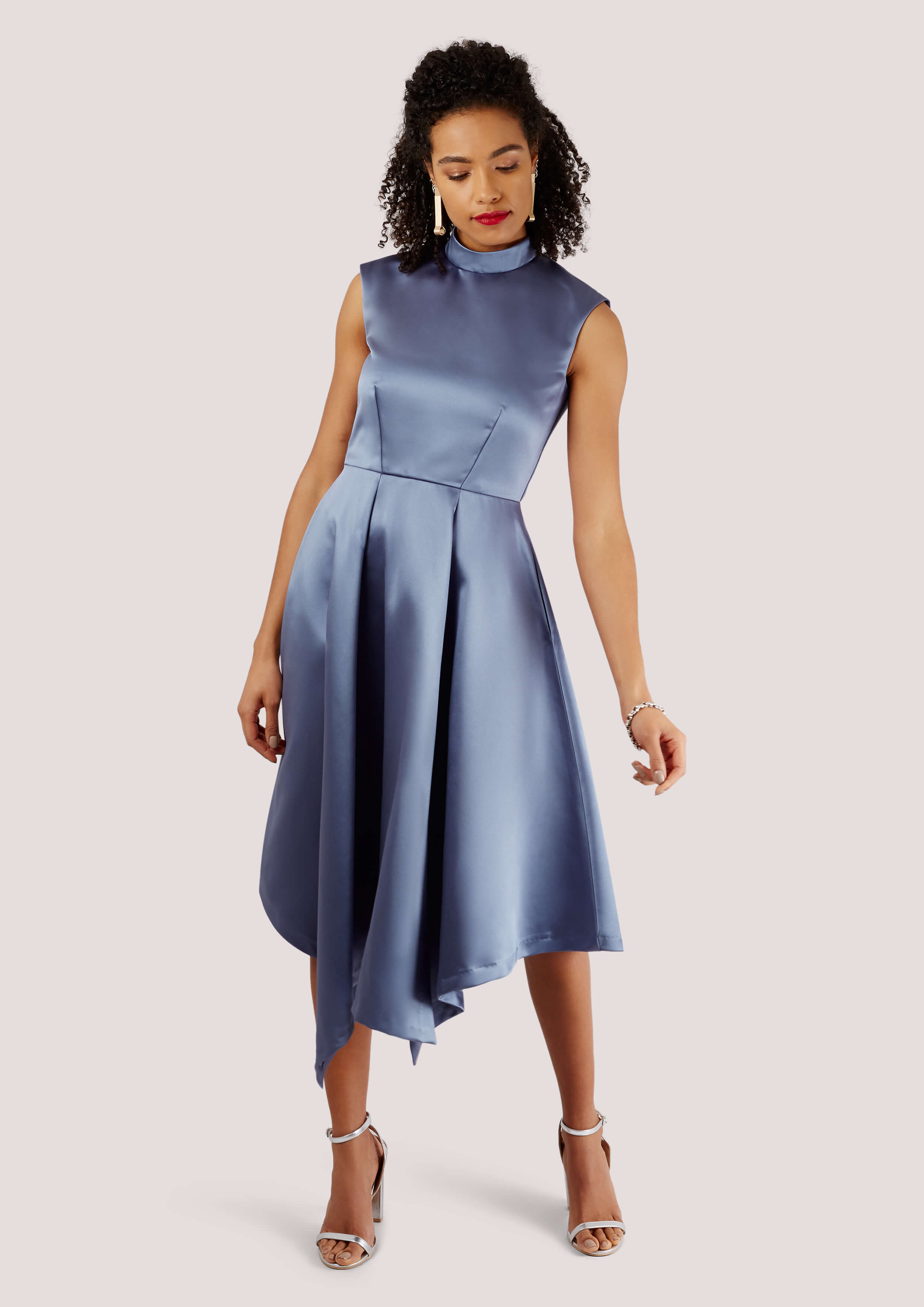 اضيفي لخزانة ملابسك مع هذا الفستان الأزرق الرمادي الرائع مع لمسة أنيقة. هذا الساتان الثقيل الوزن يخلق شكلاً منظمًا يوازن بين تنحنح غير متماثل. أضفنا جميلة الظهر وجيوب لتحقيق الكمال.