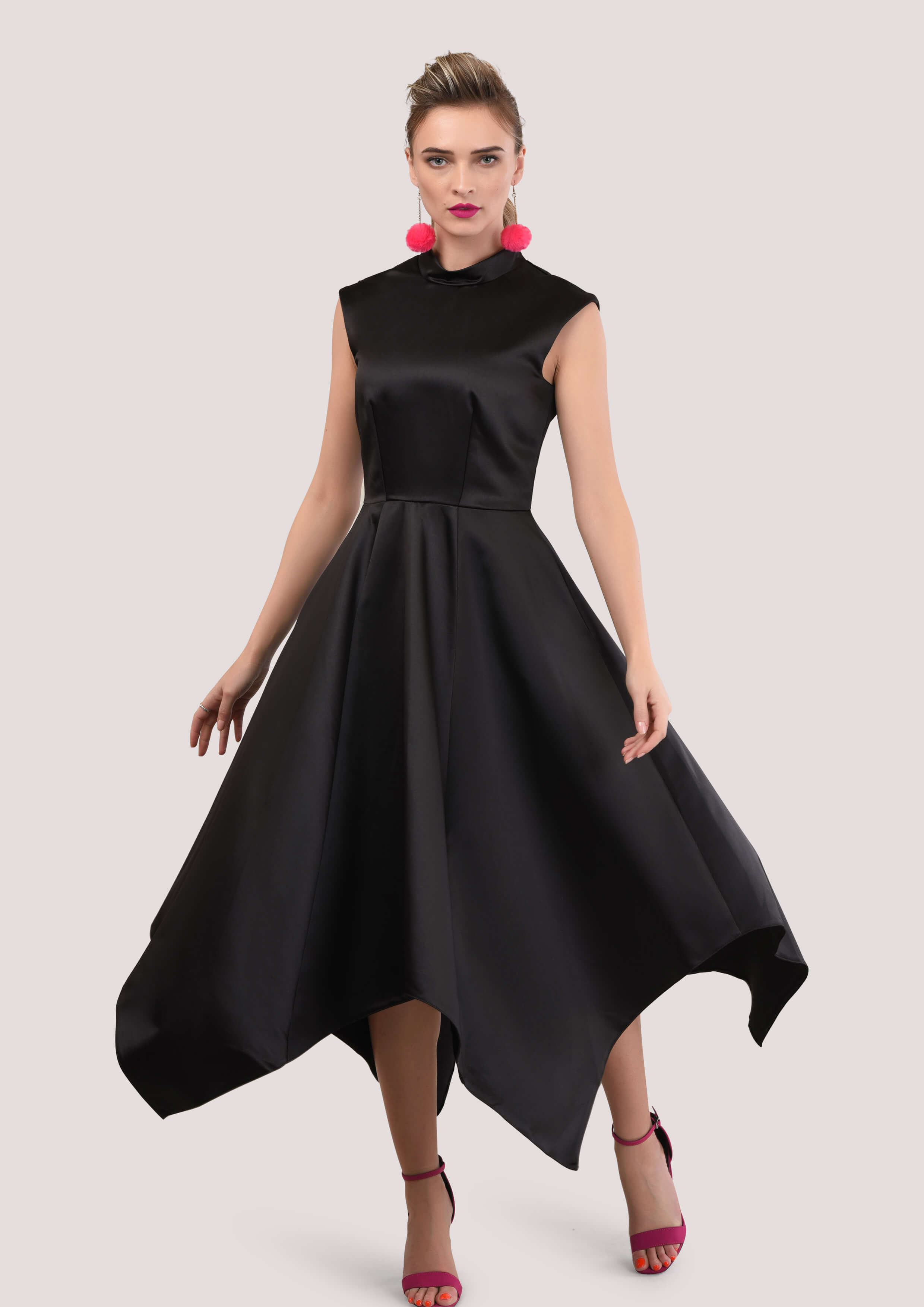 ابرزي من الحشد في الحدث الخاص بك المقبل. في ثوب أسود ساتان فاخر ، سوف يندمج بشكل جيد مع المجوهرات البراقة أو أي شيء أكثر إبهارًا.