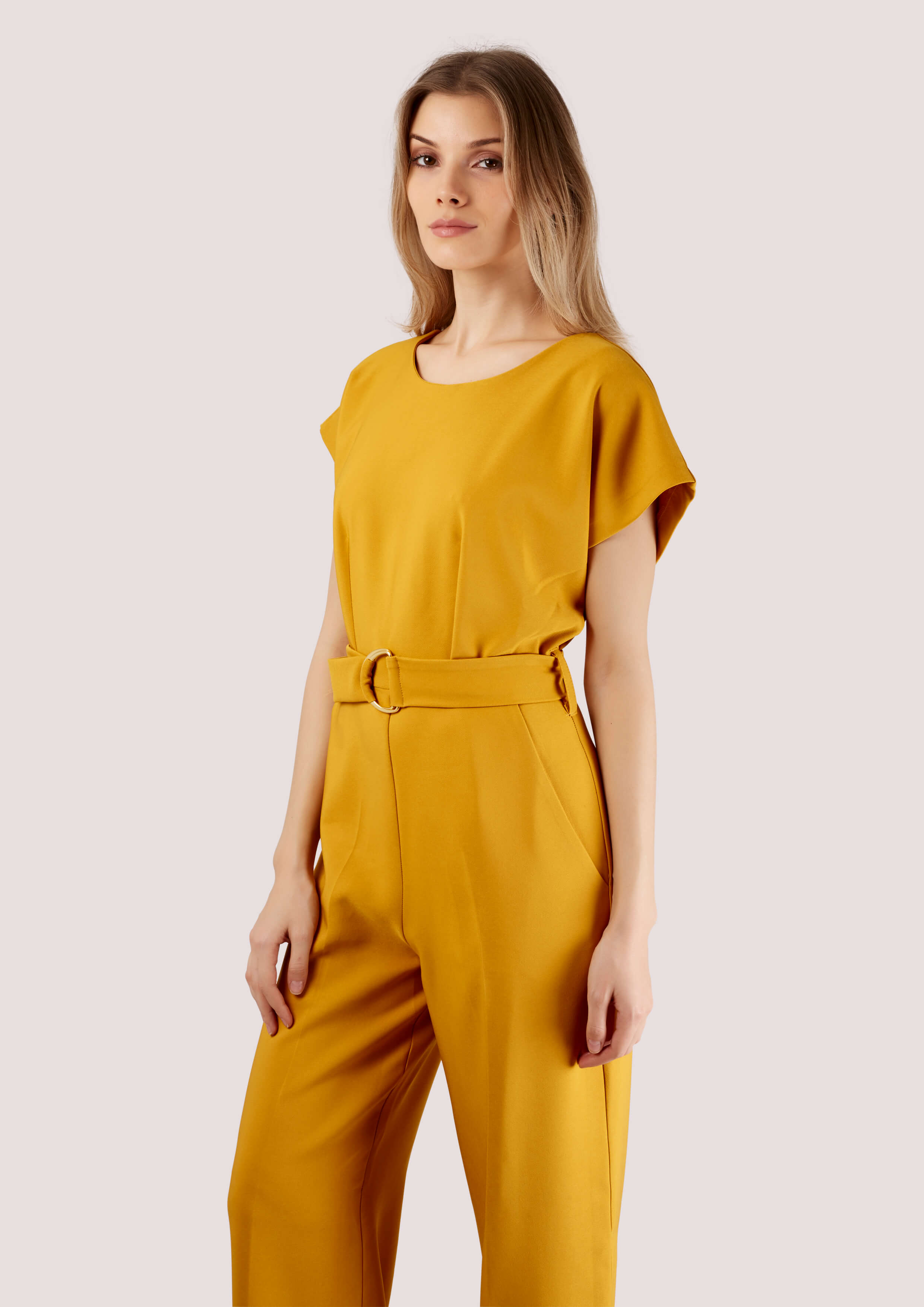 فستان بذلة عصرية عريضة الساق اصفر مقاس 10