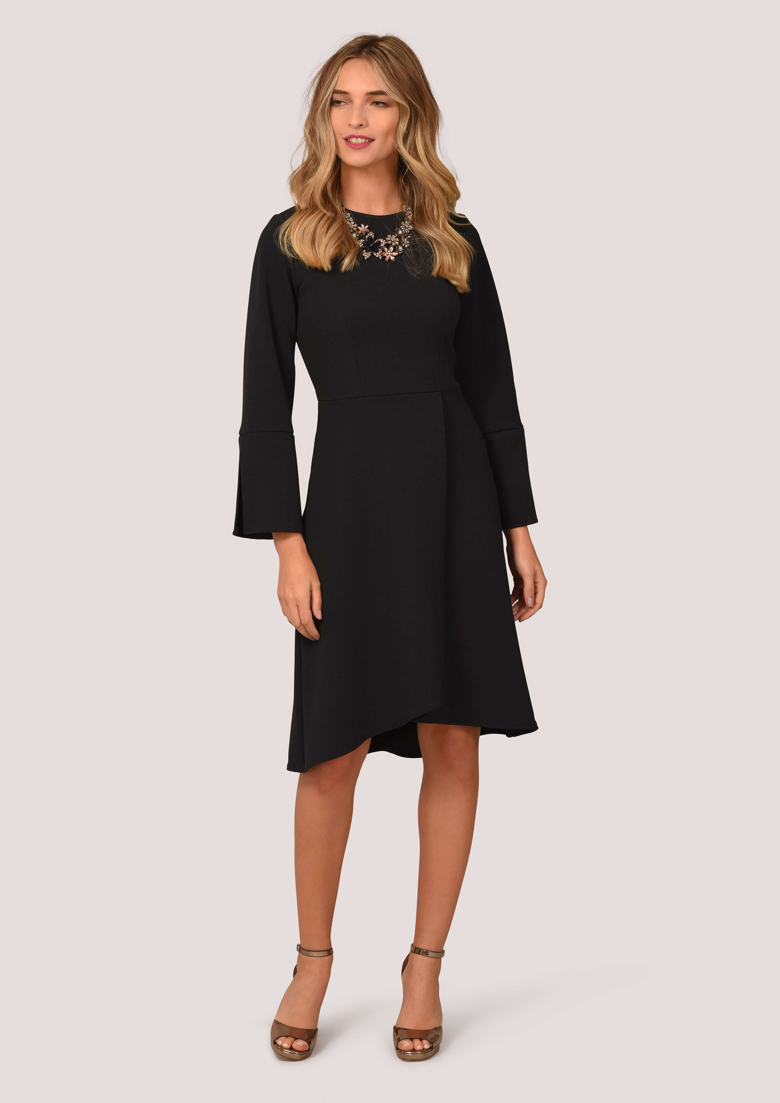سيلوهيتي من شأنها أن تملق أي شخصية. نوصي بارتداء هذا الفستان الأنيق مع عقد بقصة أنيقة والكعب البسيط.