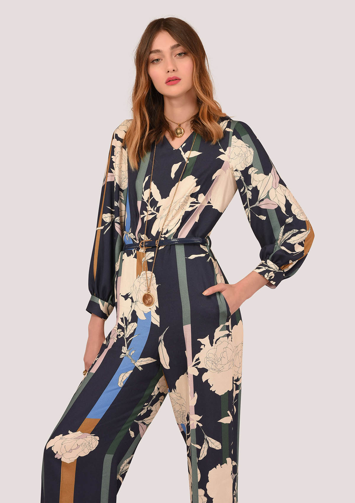 وصف المنتجV الرقبةبذلة مع حزام كحليالأكمام طويلة واسعةازهار مطبوعةغير المبطنةسحاب ذهبي خلفيفيسكوز 100صنع في لندن