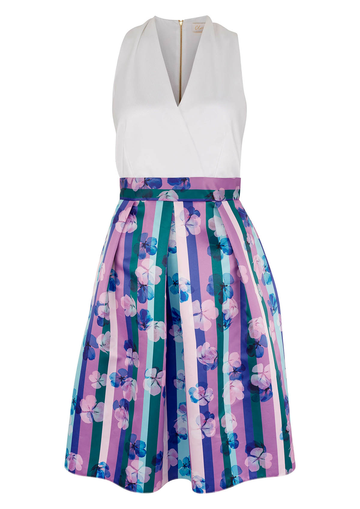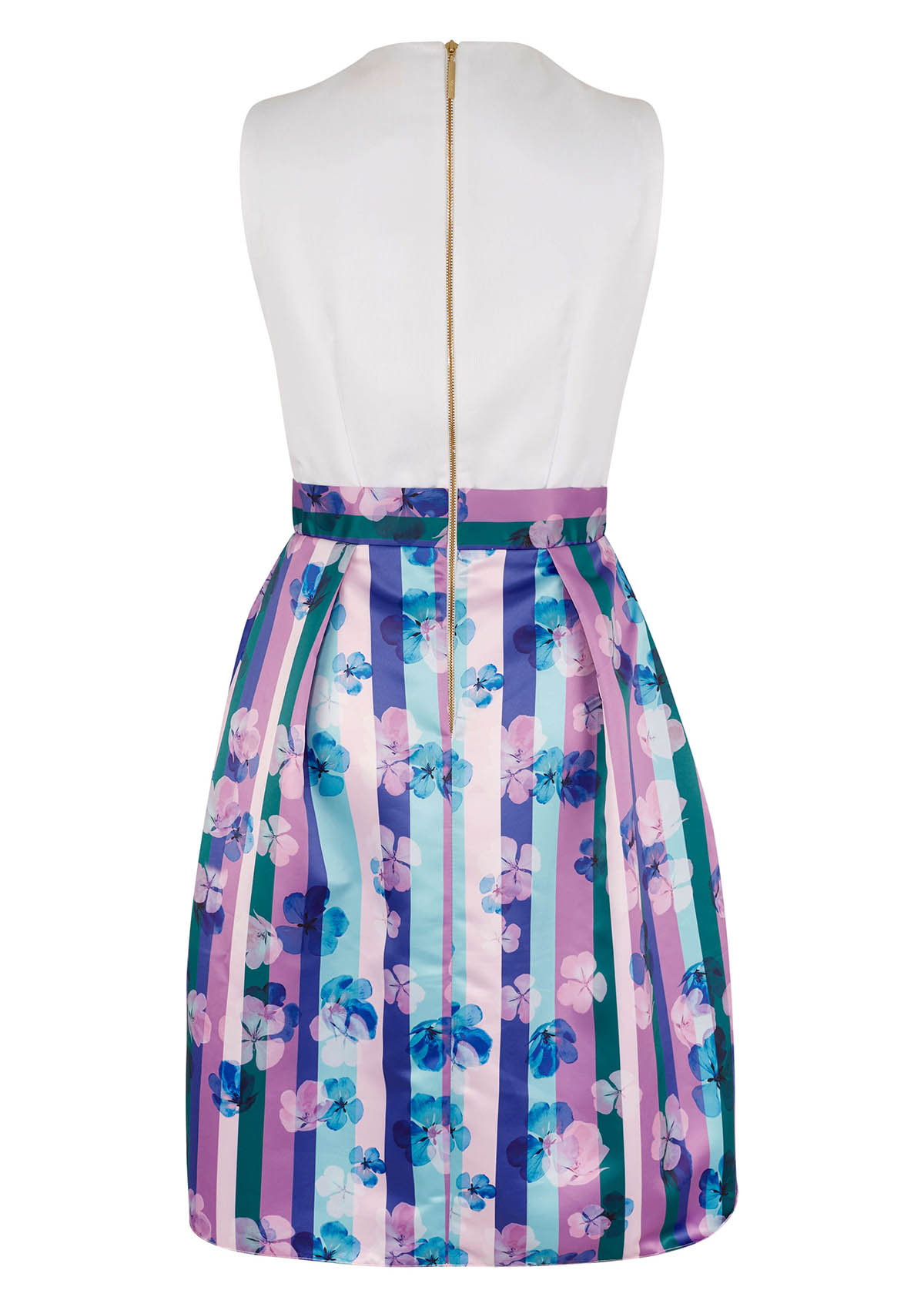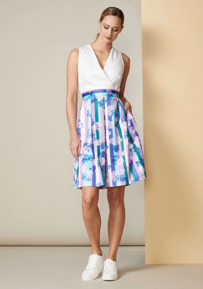 فستان 2 في 1 مع تنورة مخططة بالأزهار
