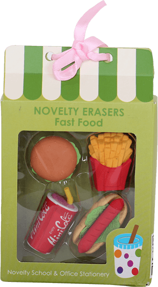 ممحاة على شكل وجبات سريعة - مجموعة مكونه من 6 قطع على شكل وجبات سريعة - محاية قلم الرصاص