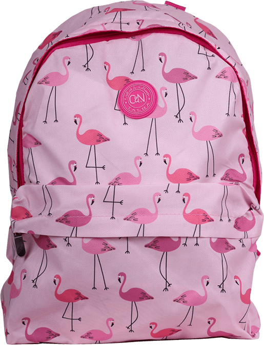 شنطة ظهر خفيفة الوزن - اللون وردي عليها سمة طائر الفلامينجو