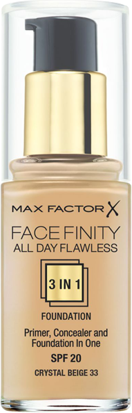 ماكس فاكتور فيسفينيتي أول داي فلاوليس 3 في 1 هي أساس سائل مع برايمر مدمج وكونسيلر لإنهاء طويل الأمد وخالي من العيوب. يوفر مستحلب ماء السيليكون المتقدم تغطية عالية ويحتوي على تركيبة سهلة التركيب ، حتى تتمكن من تحقيق ذلك بسهولة. يوفر التمهيدي قاعدة ناعمة ويحفظ المكياج في مكانه بينما يقوم المخفي بتصحيح العيوب .