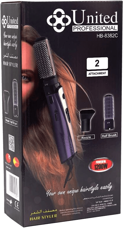 احصل على مظهر رائع للحفلات والمكتب والنزهات وغيرها الكثير من الاماكن مع هذا المجفف للشعر. حيث يقوم محركة من توليد الكمية المناسبة من الهواء المتدفق لتجفيف الشعر الرطب بلطف. تمكنك درجتين من الحرارة المعدة مسبقا من انجاز التسريحة المرغوب بها بسرعة وسهولة. مجفف الشعر يأتي مع كابل الذي يمكن توصيله بمقبس الكهرباء لتتمكن من الوصول الى المرآة بكل اريحية، ويتميز بحلقة مطاطية موجوده على مقبض المجفف العلامة التجارية : يونايتد