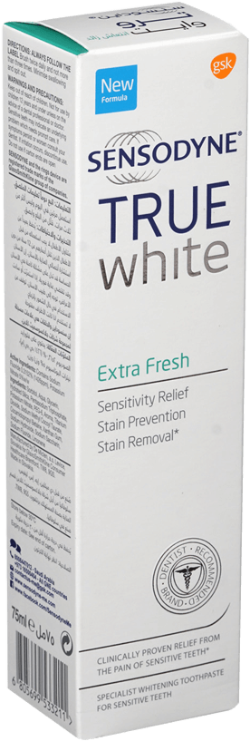 يتميز معجون أسنان سنسوداين ترو وايت بأقل درجة كشط بين أنواع سنسوداين المختلفة ومع تنظيف الأسنان مرتين في اليوم فقد أُثبت طبياً أنه يخفف الألم الناتج عن حساسية الأسنان. سنسوداين ترو وايت مصمم خصيصًا ليمنحك عناية الخبراء للأسنان الحساسة. ٧٥مل