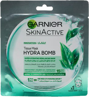 هذا القناع مبلل بتركيبة موازنة غنية بخلاصة الشاي الأخضر, حمض الهيالورنيك و سيروم مرطب. عندما يوضع على الوجه, يعمل كمضادة مرطبة لتوزيع فعالية السيروم داخل البشرة(1). يناسب البشرة الحساسة. خالي من البرابين. (1) طبقات البشرة السطحية فعالية ملحوظة (2): بعد 15 دقيقة: تسترجع بشرتك ترطيبها بشكل رائع و تصبح متوازنة و صافية. بعد أسبوع: يخف لمعان مناطق الوجه الدهنية, و تصبح المسام أقل وضوحا. إستعمال بعد استعمال, تتحسن نوعية بشرتك. (2) إختبار المستهلك – 62 إمرأة – 3 استعمالات لمدة أسبوع . كيف يستعمل:كيف يستعمل: 1. افتحي القناع. ضعي الطرف الأبيض بلطف على بشرة نظيفة. يجب أن يكون الطرف الأزرق ظاهرا. 2. اسحبي الغطاء الواقي الأزرق. حددي القناع على مدار وجهك. 3. اتركيه على وجهك لمدة 15 دقيقة. فهو يبقى لاصقا على وجهك و يجعلك تتحركين بحرية. 4. إسحبي القناع عن وجهك برفق. دلكي وجهك بلطف أو استعملي قطعة من القطن لإزالة الفائض