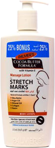 تركيبة لوشن بالمرز بزبدة الكاكاو تساعد على تقليل ظهور علامات التمدد مع مزيج خاص من زبدة الكاكاو النقية، وفيتامين هـ، وزبدة الشيا، وبيو سي-إلاست TM.وبيو سي-إلاست TM" هو مزيج قوي من الكولاجين والإيلاستين، ونبات سرة الأرض، وزيت اللوز الحلو وزيت الأرغان". تركيبة اللوشن غير دهنية، تصلح للاستخدام على جميع أنحاء الجسم، تعمل على تحسين مرونة الجلد المتمدد وليونته أثناء وبعد الحمل. 250 مل.