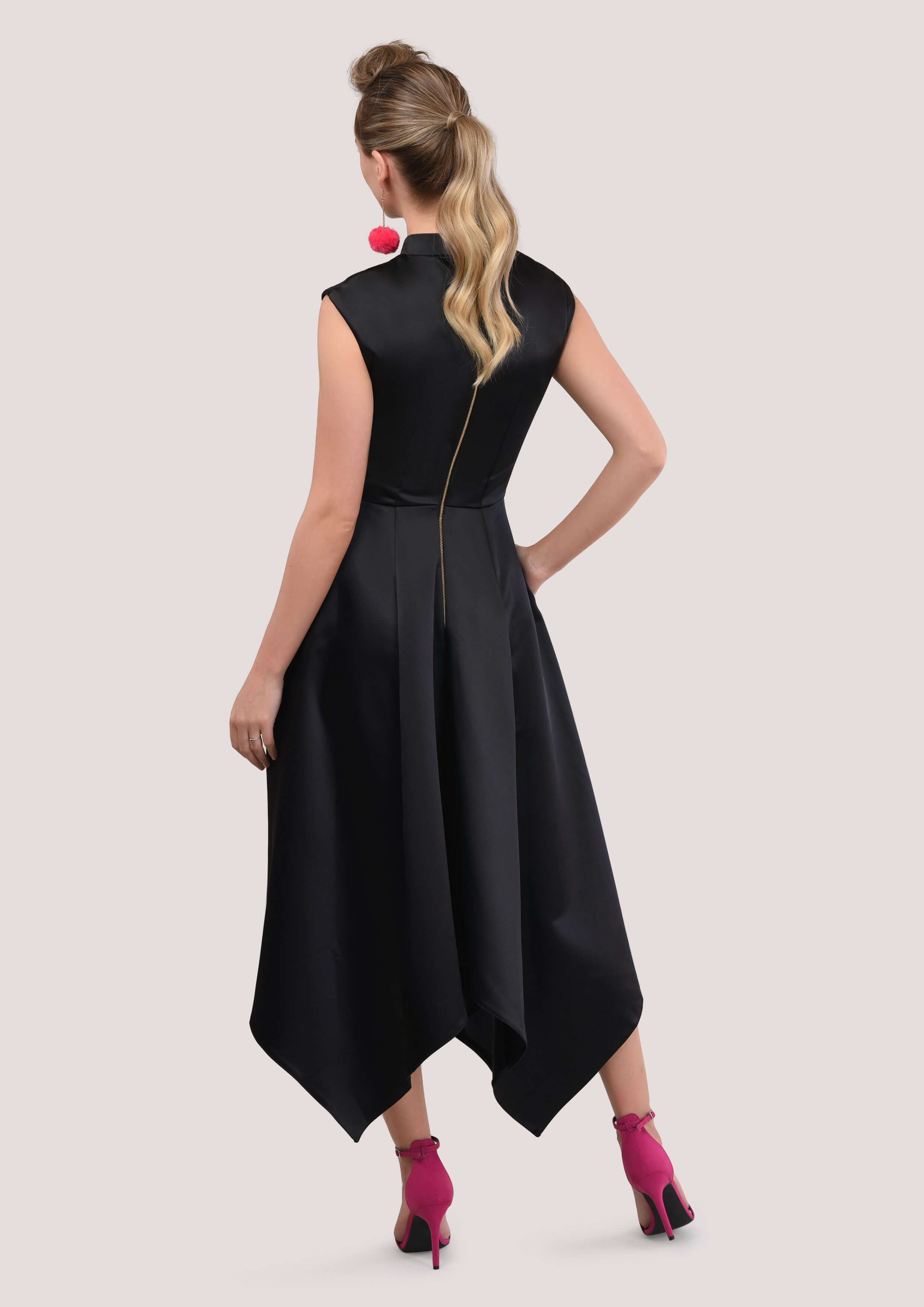 وصف المنتجرقبة طويلةواسع من تحتبلا أكمامصقيلجيوبسحاب ذهبي خلفي100٪ بوليسترصنع في لندن