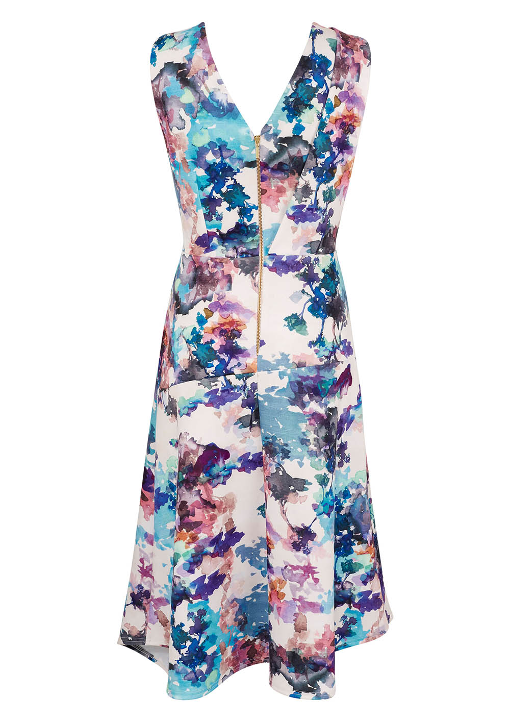 فستان بطباعة مائية ابيض مع زهور ارجوانية مقاس 12