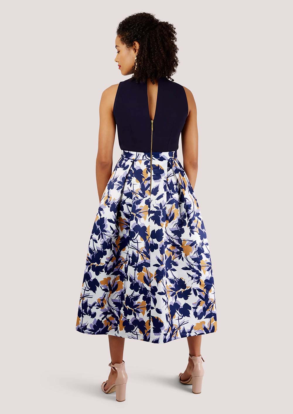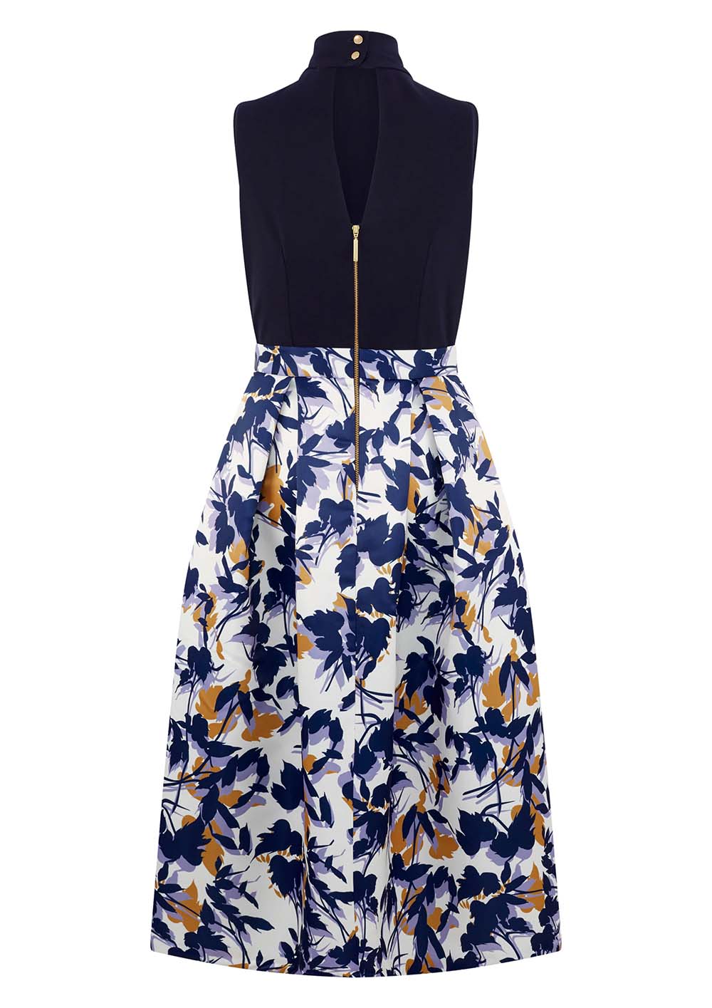 فستان عصري كحلي مع زخرفة باللون الابيض والكحلي مقاس 14