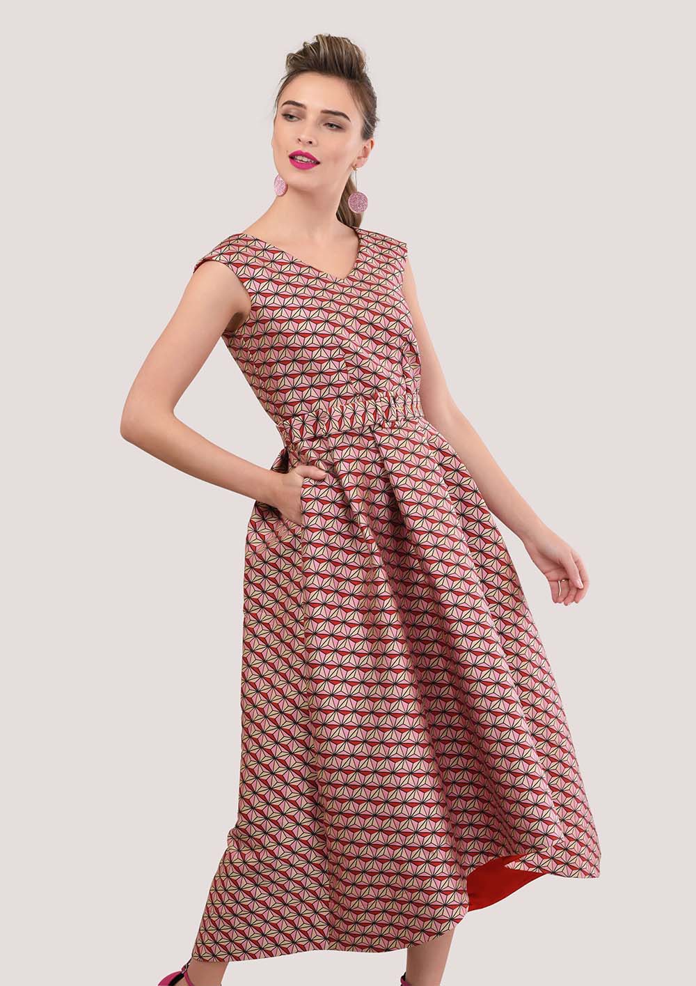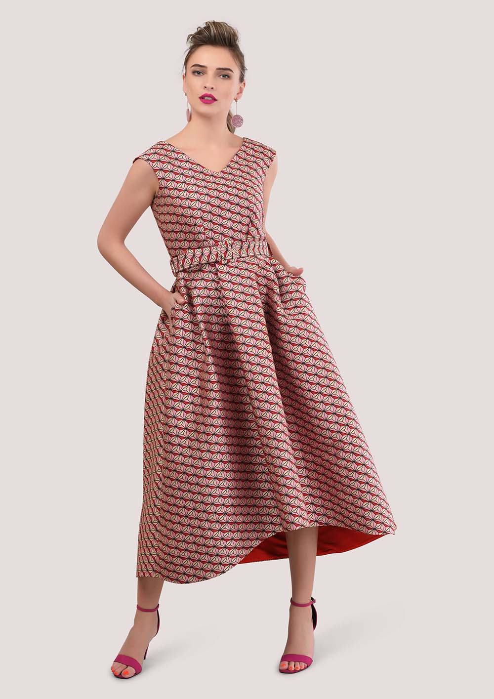 كجزء من خط الذهبي الخاص بنا ، لقد صنعنا هذا الفستان الرائع باللون الوردي الفاتن بتصميم هندسي. نحن نحب البيان الذي يجعل كل شيء بمفرده ، ونضمن أنه سيجعلك تبرز في الحدث الخاص بك المقبل!وصف المنتجمن الخلف والامام على شكلV بلا أكمامطباعة هندسية ورديةجيوبمبطنسحاب ذهبي خلفي91 ٪ البوليستر 9 ٪ نايلونالتباين 100 ٪ البوليستربطانة 100 ٪ البوليسترصنع في لندن