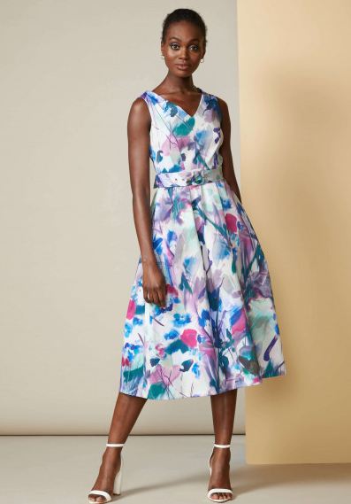 نحن نحب تنورة كاملة منقوشة على هذا الفستان الذي هو جزء من خطنا الذهبي. تعمل الألوان المائية بشكل جيد للغاية معًا ، مما يمنحك مظهرًا لا تشوبه شائبة.