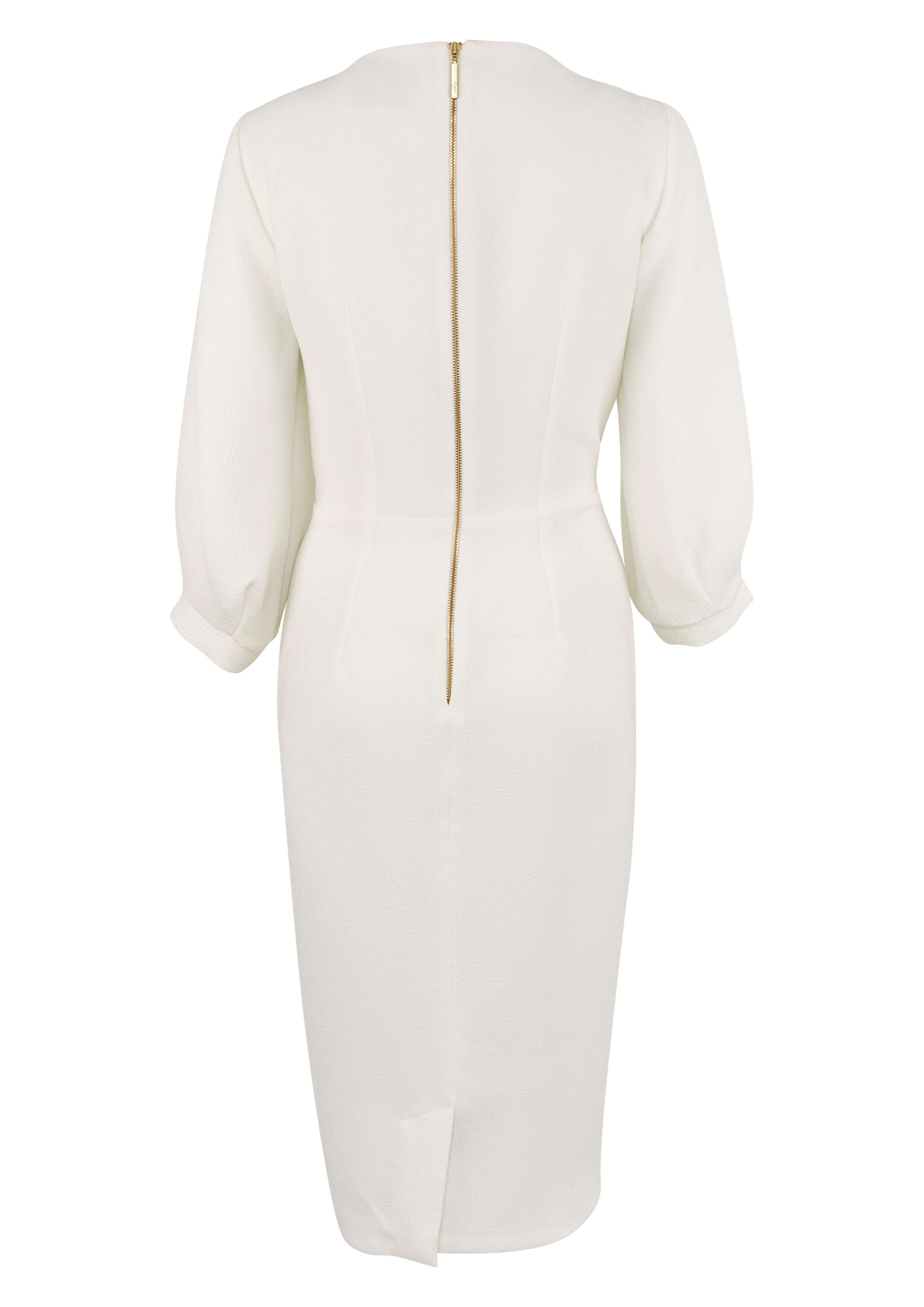 أثبت أنك تقصد الأعمال عندما يتعلق الأمر بمظهرك مع هذا الفستان الأبيض. تتميز التنورة البيضاء أنيقة بأكمام مطوية ، فمن المؤكد أنك ستراك من مكتب إلى اماكن انيقة أنيقة.
