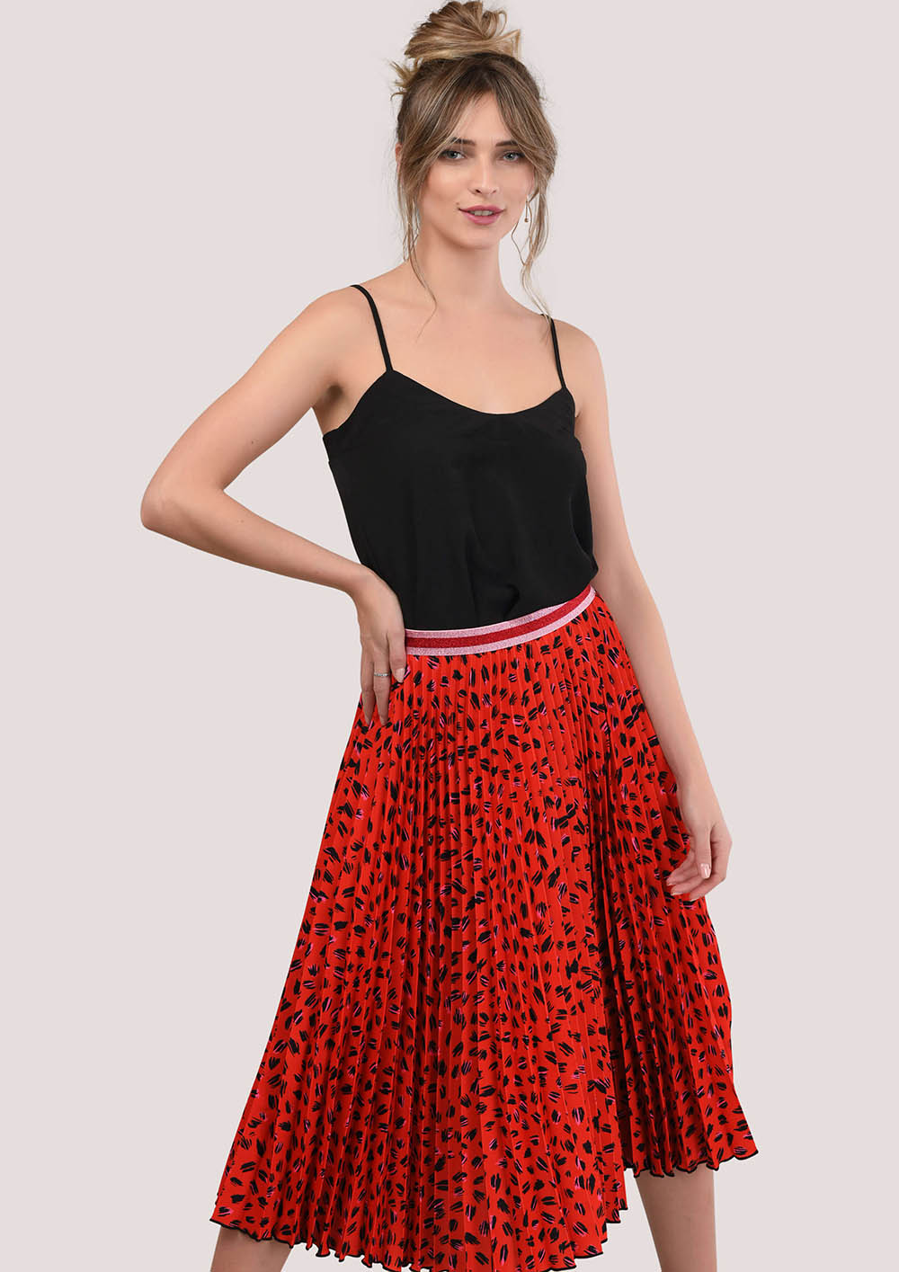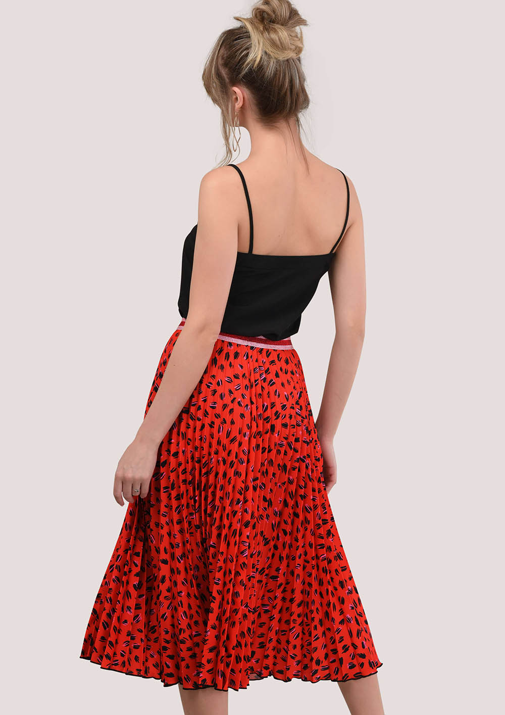 لدينا تنورة مطوي أصبحت بسرعة واحدة من الكلاسيكية لدينا. قدمنا لمسة فريدة من نوعها مع طباعة الفهد الأحمر وحزام معدني. ارتديها مع بلوزة سوداء أو بيضاء لإطلالة جذابة ولكن أنيقة.